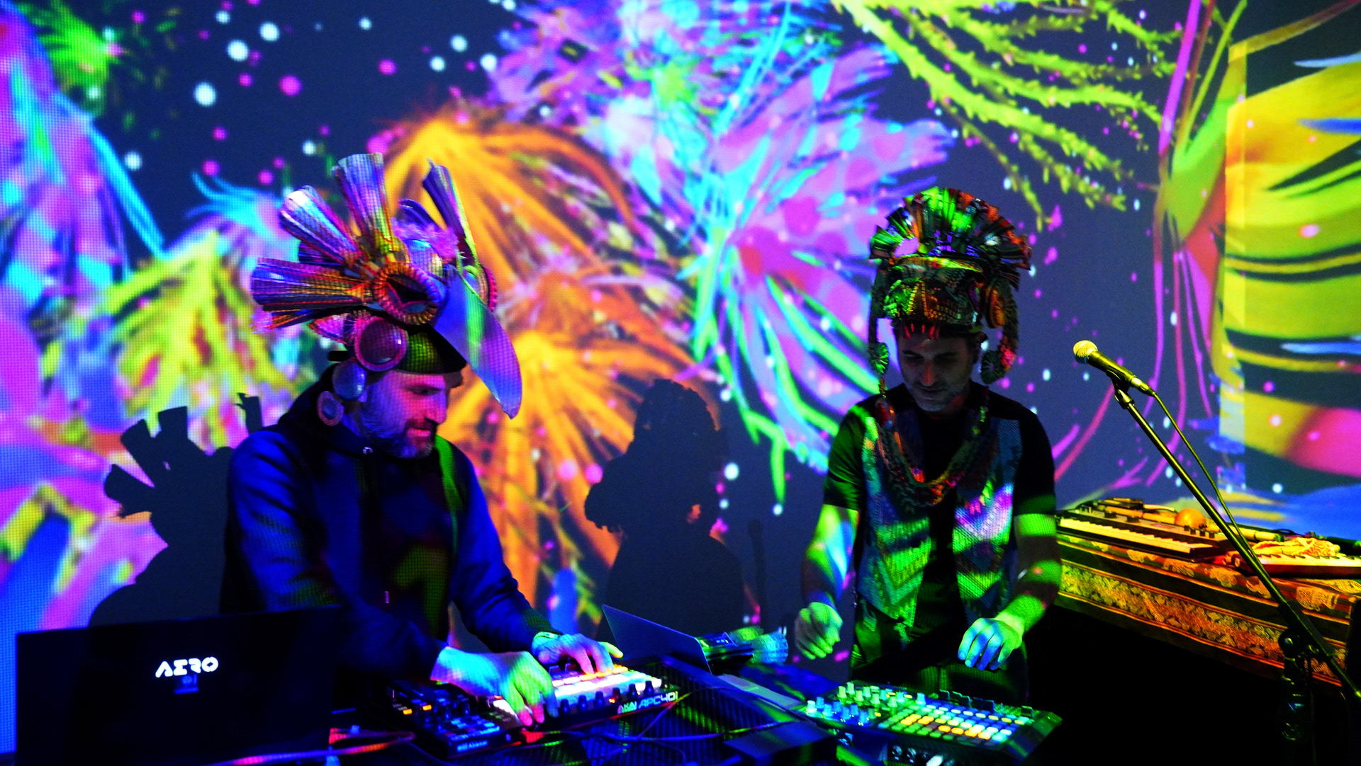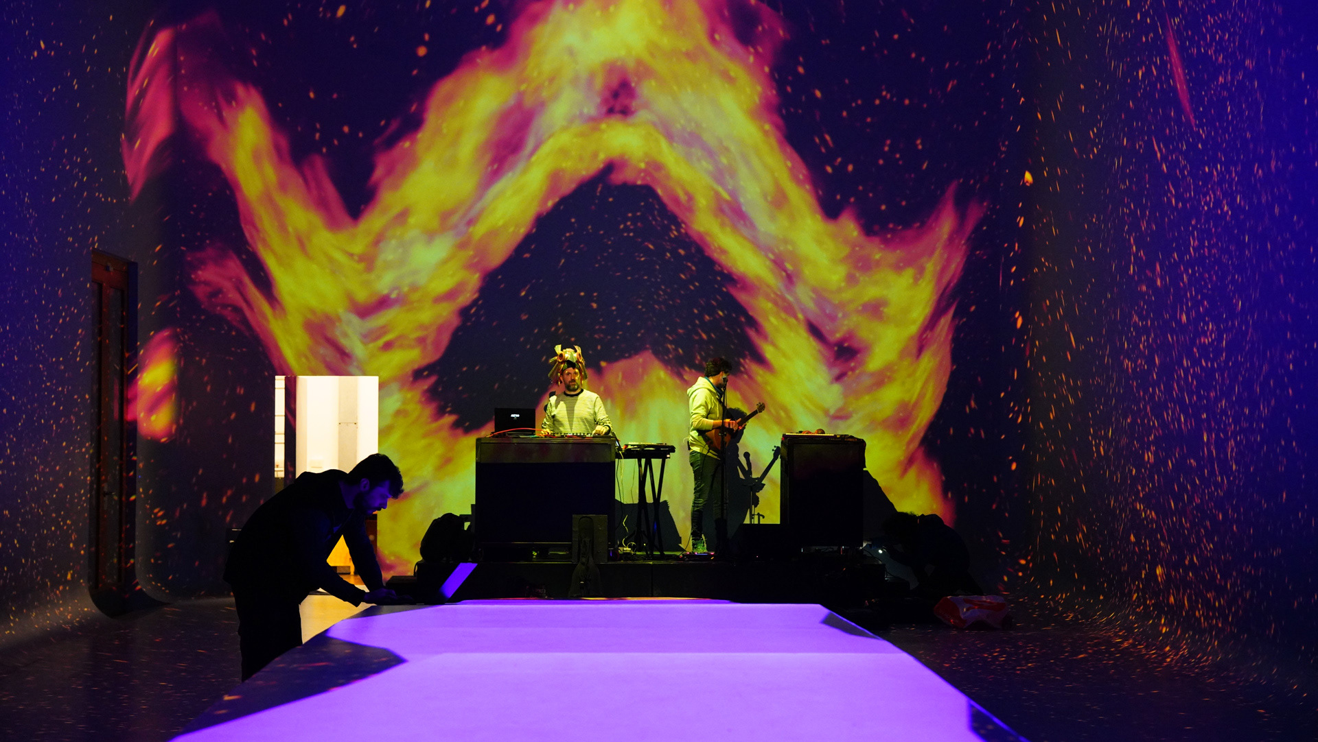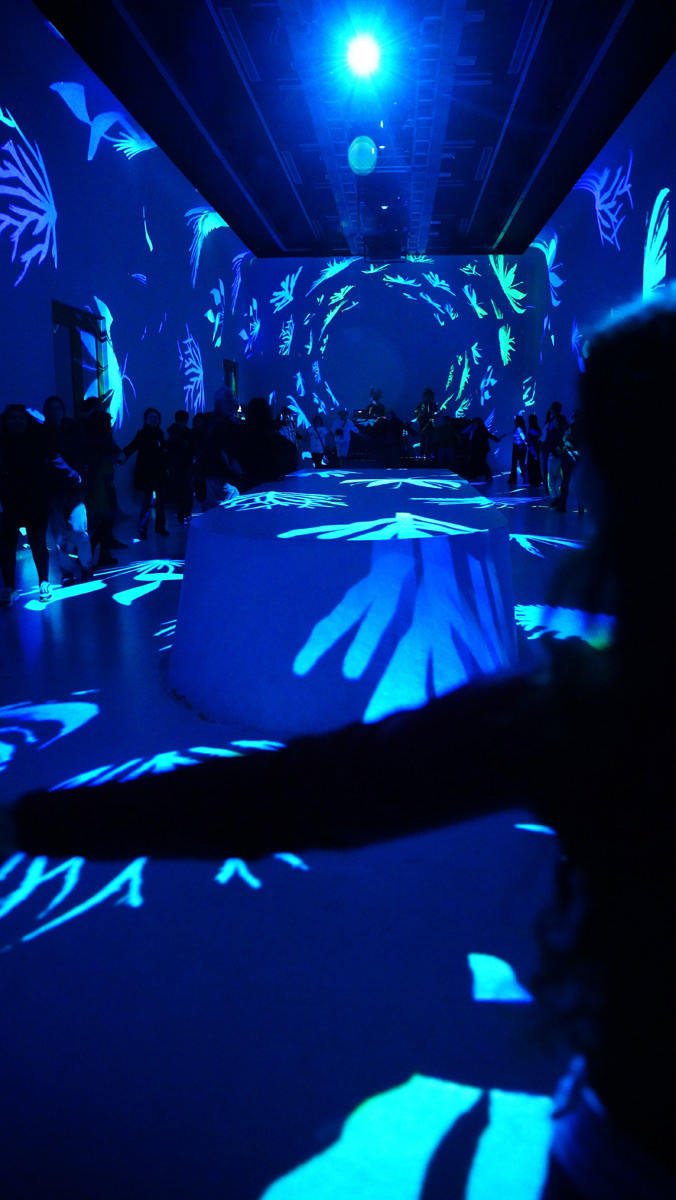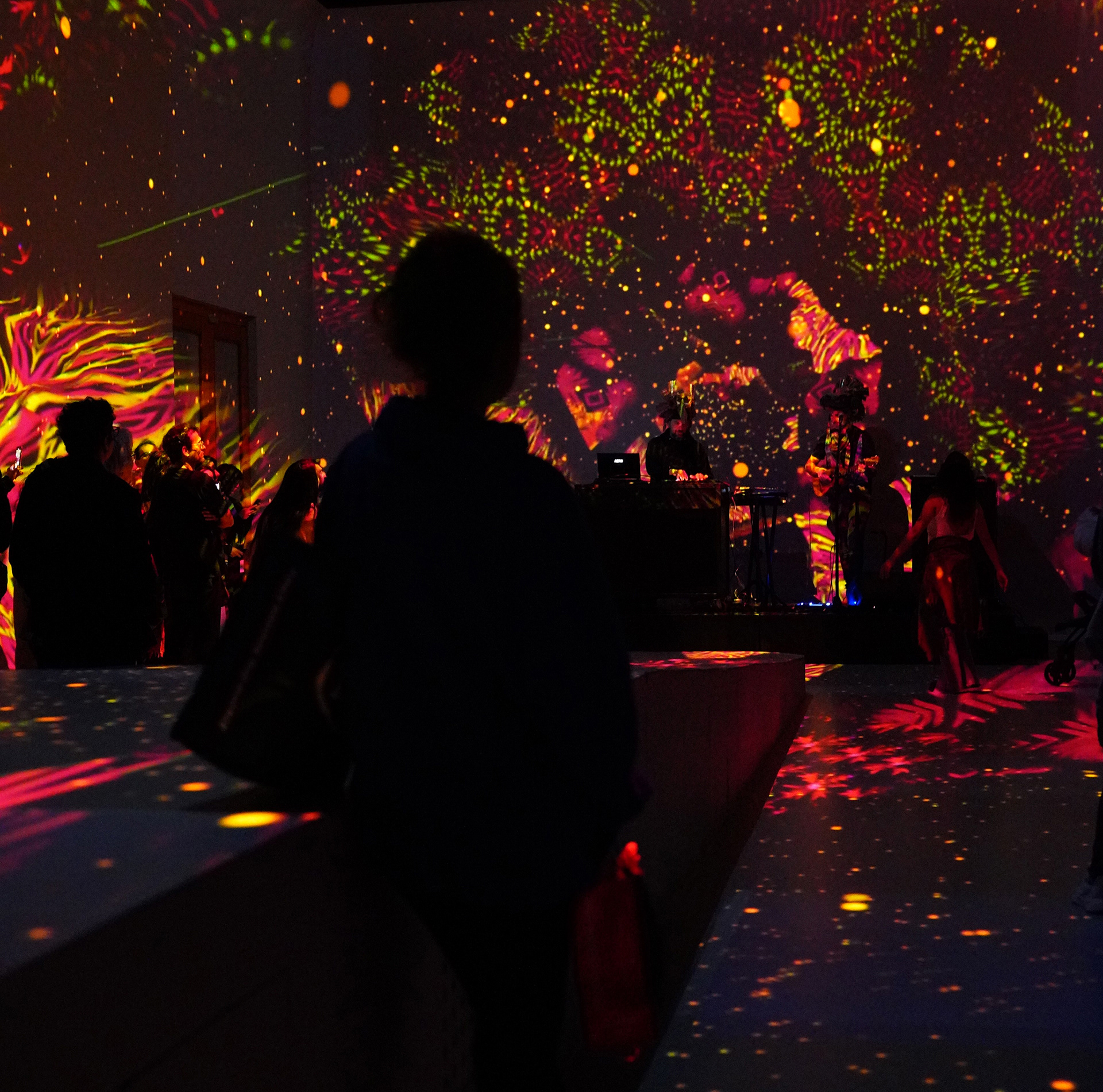 La propuesta fusionó música en vivo y visuales envolventes, transformando el espacio en un paisaje sensorial donde el color y el sonido construyeron una experiencia expandida y emocional.